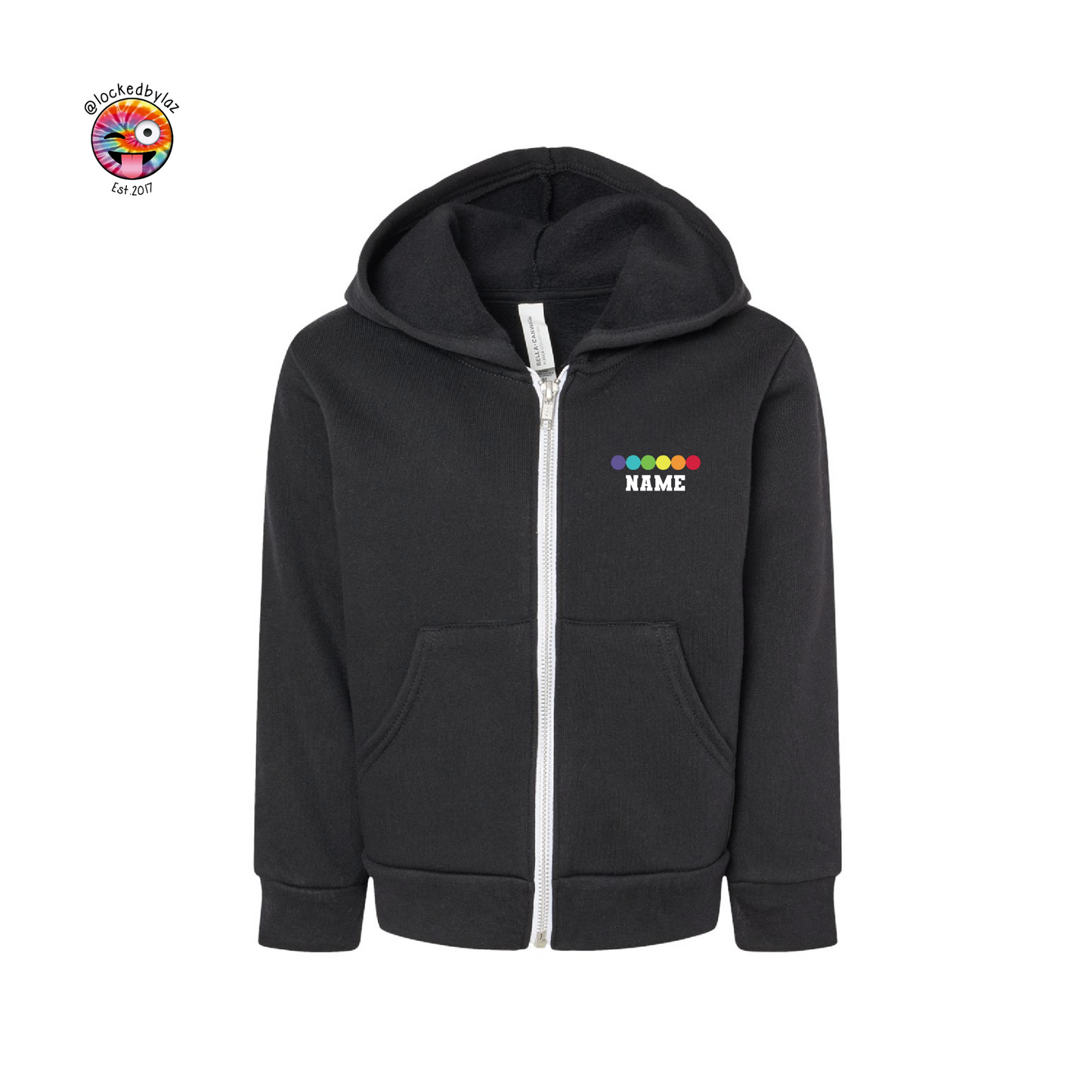 Stay warm and cozy in our Youth Logo Zip Up Hoodie. Personalize it with a name for only $5. Perfect for kids who want to show off their unique style!